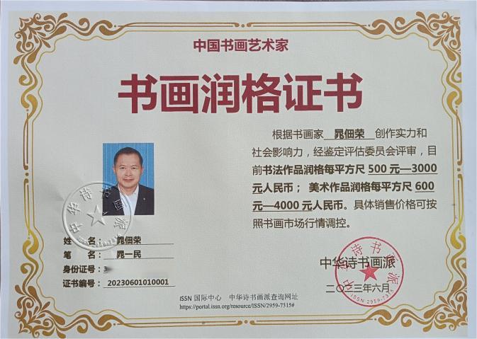 ·书画家郭瑞志润格证书 [ 2023-10-29 ]