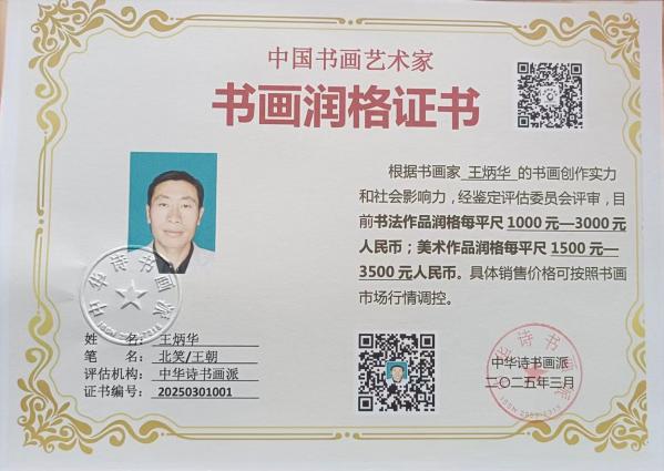 ·书画家王炳华润格证书 [ 2024-07-18 ]